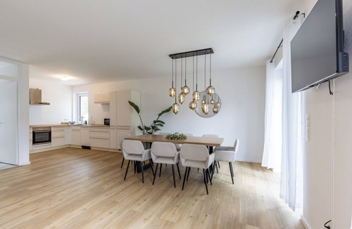 Step outside to enjoy the private garden, shared uncovered terrace, and grill where you can prepare meals and unwind in the fresh air. The location near Dümmer Lake offers activities for everyone including water sports, cycling and hiking tours, wellness experiences, museums, and a zoo. In the evening, you can visit a beach bar to put your feet in the sand and watch the sunset.