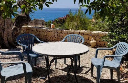 Enjoy rest and relaxation in a large villa with a spacious Mediterranean garden under old trees. The house has 120 m² with four bedrooms, two bathrooms and a large living and dining area from which you have a beautiful view of the sea. The fireplace is in the living area. A television with satellite reception, a Blu-ray DVD player and Internet (WLAN) are available. Almost all German TV channels are received. Relax in the evening with the games, novels or films on display. Hiking guides, maps and travel books about the region and a list of recommended restaurants and excursion destinations are available. Towels and bath sheets for the beach are provided. There is central heating for the cooler seasons.