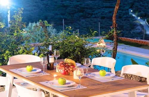 In a haven of serenity and refinement designed to provide guests with the outmost privacy and seclusion in Creta Island.Combining the warm atmosphere and feel of a private residence it features the perfect setting from which to take in the uninterrupted views of endless azure waters, blue skies and blindingly whitewashed houses posing against the mesmerizing backdrop of Cretan nature.We will make sure that anything you need or desire – or had never even thought of – will be taken care of during your stay with us; after all, this is what will make your stay in Grand View Villa unforgettable.We will make you feel special, either relaxing in the refreshing pool of our villa or seeking the thrills of the island of Crete.Our Sea Grand View Villa offer 4 bedrooms, 3 bathrooms ideal for 8 + 4 guestsThe outdoor pool is heated and can reach 6 to 8 degrees more that the 24 h average air temperature with maximum value of 29°CShort descriptionOther : Non-smoking houseShort description 1Number of kitchens : 2SurroundingNearby sports facilities : Diving, Mountain climbing, Mountainbiking, Tennis, Water skiingRental Facilities : Bicycle rental service, car rentalSurrounding 1Location description : The authentic small village Kastellos is located on a hill in the eastern part of the Apokoronas and because it is on an altitude of 252 meters high, there are beautiful views of the sea and the tourist resort of Georgioupolis. The name of the village comes from the fact that it is built like a castle. Originally the people lived in the lower valley but in 1800 they were forced to move to higher grounds because of the violence of the Ottoman rulers. Much of this old part of Kastellos is now deserted and dilapidated.Yet Kastellos is a nice village to pay a visit to. Time has stood still here. There are small gardens with tomatoes and other vegetables, flowers, free-range chickens, goats and the occasional cat. It is very quiet. The single local you run in to is surprised to see you and gives you a friendly hello. The village has recently received an "upgrade" because a luxury complex (Kastellos Village) has opened its doors. The nearby village has several taverns serving Cretan cuisine. Guests can also visit the beach of Georgioupolis or the Lake Kourna, 5 km away from the resort. Kastellos Village is a 40-minute drive from Chania and 30 minutes driving from Rethymno. Souda Airport is less than 25 km away.Garden and outdoorGarden facilities : Garden furniture provided, Grill, Summer houseOn-site leisure facilities : Outdoor swimming pool exclusive use, Swimming pool