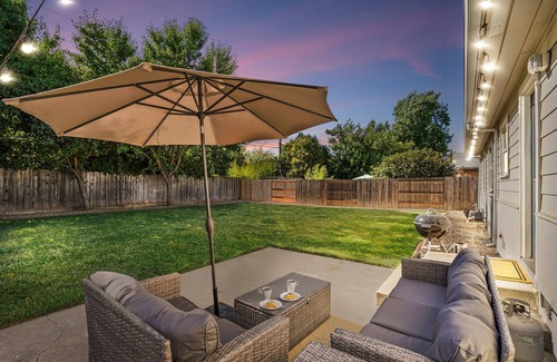 Welcome to Hop, Skip, & a Jump Lodi, a bright & spacious home that is close to everything Lodi has to offer! The airy living room provides the perfect spot to gather and relax and the full kitchen gives you the option of cooking your own meals - but why would you? Many of Lodi's wonderful restaurants are less than 5 minutes away. The large backyard provides the perfect space to enjoy an evening beverage and the cozy bedrooms each offer a king size bed for ultimate comfort.