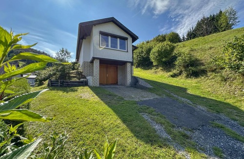 This cosy holiday home is located in the quiet village of Schönbrunn and thanks to its quiet, higher location, you can enjoy beautiful views over the valley here. The house is tastefully decorated, with a tiled stove in the living room providing warmth and cosiness during cooler days. Outside you will find a well-fenced garden, perfect for guests with a dog. There is a lawn with sun loungers, a BBQ and a covered terrace where you can relax and enjoy the sunset