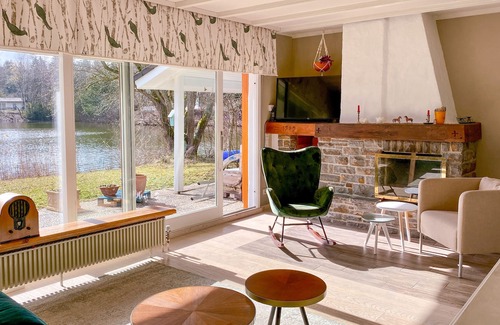 South facing directly on the lake * Panoramic view from the living room * Breathtaking view of the water * Open kitchen with new appliances * TV with 4K Ultra HD * Fireplace * Whirlpool tub * Dishwasher, microwave, washer, dryer * Suitable for children * High quality new mattresses * Down comforters * Lots of attention to detail * Hiking opportunities and zoo nearby * Wonderful in winter as well as summer in any weather * Light reflections and sun glitter on the waves * A place to recharge your batteries.