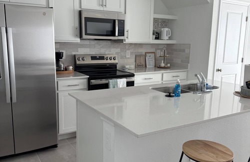 Located in Bradenton, this townhome is a dream. With 3 bedrooms including 2 queen beds, 2 twin beds and a sofa bed, guests will have plenty of space to relax. The property also features 2 and 1/2 bathrooms, 1 in the master room equipped with a spacious shower, separate toilet room, double vanity sink, closet and hairdryer. The second bathroom is equipped with a vanity sink and bathtub. In addition, there is a cozy living room with a sofa bed for extra sleeping arrangements. Finally, the rental offers a full kitchen and a laundry room. You have access to a beautiful pool and playground in the community. The home is located in a brand new and quite community near many attractions. Your stay here will be nothing short of enjoyable.