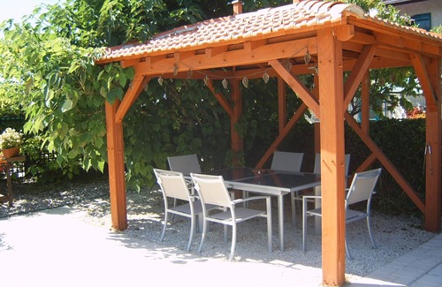 for the owners and one for the guests. The property is decorated to a high standard with breath taking views over the surrounding countryside. Sun loungers. garden table and chairs are provided for our guests comfort so you may spend the days relaxing around the pool, the courtyard or the grounds soaking up the peace and tranquillity. A BBQ is provided in the courtyard. The apartment has one large bedroom, a lounge/diner, kitchen, shower room and a lobby with doors opening up onto the courtyard and a few steps away from the pool. The pool is 10 x 4 meters and is private but shared with the owners on occasions. There are beautiful views from the pool which has a covered area should you wish to eat round the pool. Dining out and shopping is no problem as we are 5 mins drive from Brantome, the Venice of the Perigord which is a small market town surrounded by the gently flowing river