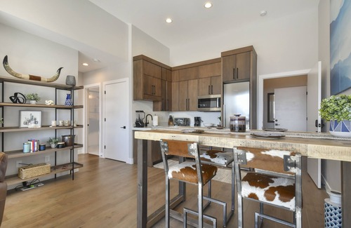 Chimborazo is a newly constructed high-end home ready for visitors who expect and appreciate luxury. The décor is western themed and combines modern and rustic elements, including Native American art and pottery by local artists. Key features include hardwood floors throughout, two kitchens with stainless appliances and high-end quartz countertops. The two master suites include beautiful barnwood accent walls and a large master bathroom with heated floors. The home consists of three floors with one bedroom and bathroom on each. It sleeps up to 12 with 2 king beds, one pull-out queen and 6 twin bunk beds. Bedrooms are richly appointed with high-end linens and bedding that will remind you of sleeping in the very best luxury hotels. Kitchens include artistically designed dishware from Portugal and all of the kitchen features you will need to feed and entertain your family. The first-floor patio is also furnished with a gas grill for your use. Living areas are artistically appointed with beautiful Native-American themed rugs, as well as rich western leather couches. There are three separate seating areas in the home, one on each floor for you to relax and connect with your family and friends, also providing convenient separation for kids and adults. When the weather permits, there is no better place to enjoy the amazing views than from the outdoor balconies on floors 2 and 3, both furnished with new comfortable wicker furniture. An entertainment room on floor one includes entertainment options for every taste, with board games, card games, as well as the newest Xbox linked to a large 65-inch TV. There are 5 large screen TVs in the property, setup with all of the streaming apps, as well as DirecTV and NFL Sunday Ticket. Fast internet for streaming is of course available on every floor.