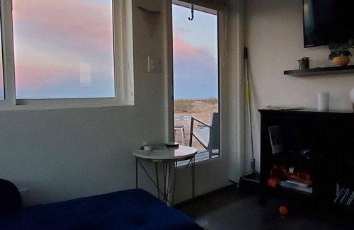 Starry nights! Different outdoor places to enjoy! Cornhole! Basketball hoop! Porch to relax on. Great sunrises and sunsets! Visit the famous Joshua Tree National Park! Try some local dinning. happy!