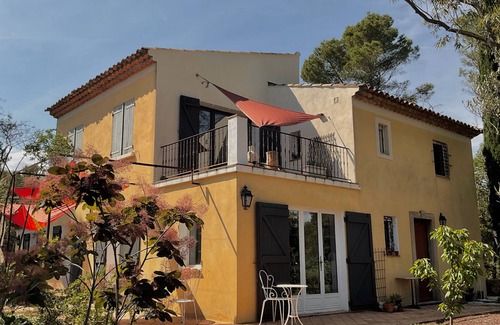Seasonal rental in a green settingPrivate pool, wifi6 people,3 bedrooms (1 air-conditioned), 2 bathrooms, 2 separate toiletsBeautiful 1-hectare property where peace and privacy reign, La Cadenière offers all modern comforts combined with the traditional Provençal charm.The ground floor has a large, bright living room with a fireplace, a fully equipped open kitchen, a small TV lounge with a flat screen, 1 dining room and 1 beautiful double bedroom (twin beds that can be set up as a king-size bed) with air conditioning and a superb fully renovated bathroom, separate toilet.Upstairs, 2 double bedrooms (1 room with twin beds and 1 queen-size room) with mosquito nets at the windows and fans, share a beautiful bathroom equipped with a shower and a bathtub and a separate toilet. The south-facing bedroom gives access to the \'solarium\' terrace.The entire house is equipped with high-quality, recently purchased bedding.Many relaxation areas are arranged in the landscaped garden and terraces surround the house to enjoy the outdoors as you wish.The beautiful-sized pool (10.5mx4.5m) is equipped with a heat pump and promises wonderful swimming from May onwards. Hammock and sun loungers are available for your moments of relaxation.Additional costs to be expected:End-of-stay cleaning is mandatory, intermediate cleaning can be arranged on request.Bed linen is included in the booking (2 bath towels, bed linen and kitchen towels) and the pool towel (optional)Many other services (Ayurvedic massage, bike rental) are available, feel free to ask us.Our prices are broken down into 2 parts:- The rent, insurance, guarantees - payable in advance- the extras (end-of-stay cleaning, bed linen, tourist taxes, others) - payable on arrivalCarcès is a Provençal village with all the necessary shops. Just a few minutes from the picturesque village of Cotignac, in the heart of a preserved natural environment. It is a place conducive to many activities (Provençal markets, vineyards, horse riding, kayaking, walks, culture, festivities...)In this haven of peace, holidays rhyme with well-being and serenity.Discover our beautiful Provence Verte by bike, explore our small roads by motorcycle. Walk in the Gorges du Verdon, climb in the Vallon Sourn