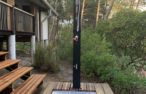 La Jenny Chalet with views of communal pool in Naturist Village | House in Le Porge