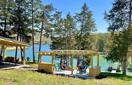 NEW ~ At Easy Shores Lake House you will enjoy an easy walk down to your private covered boat dock. We have 2 kayaks with life jackets and a covered slip for your boat with ties on the exterior for up to 2 additional watercraft. Our covered deck features outdoor dining areas as well as a large BBQ for grilling. Other unique outdoor living spaces include cornhole, a new fire pit and a covered gazebo with swings. Located in a larger yet quiet cove, it is perfect for families to play in the water without fear of watercraft and waves.