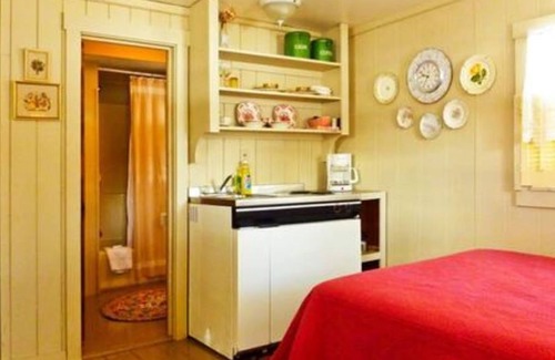 The mini kitchenette is a delightful addition, thoughtfully stocked with all the essentials to make your stay convenient and enjoyable. It features a two-burner stove top and a small kitchen sink, perfectly suited for preparing simple meals. The mini fridge provides adequate space for your perishables, while the microwave and toaster add to the convenience of quick snacks and easy breakfasts. To top it off, the coffee pot is ready to brew your favorite morning beverage, adding a touch of home to your stay.