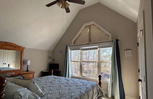 Waterfront cottage with big water views and easy access to beautiful clear water in a private cove away from boat traffic for safe swimming/water play. Plenty of room for everyone, the house sleeps up to 10 guests with comfortable beds and 3 full bathrooms. 2 family room areas and a generous front yard allow for lots of family bonding time with multiple games to enjoy both in and outdoors. At the end of the day, guests can sit on any of 3 amazing decks or a screen porch to enjoy beautiful Smith lake sunsets while making s’mores on the fire pits.
