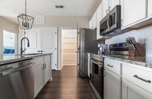 Stay in the heart of New Albany with all the comforts of home at Camden. Perfect for monthly or extended stays, each fully-furnished apartment includes a full kitchen with granite countertops, spacious cabinetry, and in-unit laundry. Enjoy resort-style amenities like a heated pool and hot tub, Peloton-equipped fitness center, Starbucks coffee bar, and golf simulator.