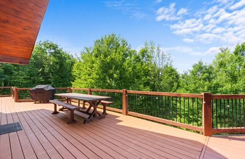 We'd like to welcome you to our expansive log cabin home situated on 7 private acres with breathtaking mountain views located in the heart of the Catskills - 20 minutes from Hunter/Windham/Belleayre. Mountains. An ideal four-season getaway. Enjoy creek swimming, hiking, skiing, snowboarding, fly fishing, and magical rail bike rides with magnificent views. Enjoy a cookout on the enormous deck with our large BBQ, soak up the mountains in the hot tub and cozy up under the stars by the outdoor stone fireplace right on the deck, with a fire and a movie or game on the big screen outdoor TV.