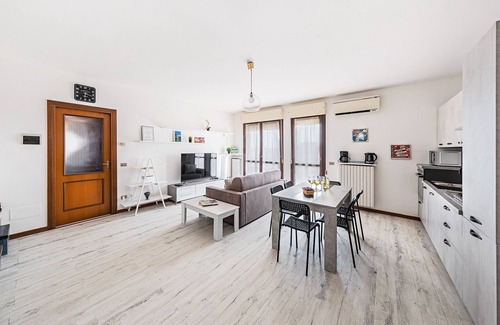 Located in Sirmione, inside recently repainted and rearranged residence with swimming pool and large green spaces, convenient to main services, renovated one-bedroom apartment for a group or family vacation up to 4 people!The apartment, provided with free Wi-Fi, welcomes guests with the bright and spacious living room equipped with air conditioning, a sofa bed for two, flat-screen TV, dining table with chairs, fully fitted kitchen with cooker hob, refrigerator, freezer, oven , microwave, dish washer, toaster, coffe machine, electric kettle and orange juicer. The living room leads to the private terrace equipped with a dining table with chairs.The apartment continues with the bedroom equipped with a comfortable queen size, a wardrobe and a flat-screen TV. A bathroom with shower, washbasin, bidet, WC and washing machine completes the apartment.*Shared pool (10 x 20 meters long) is available from June 1st to September 30th. Swimming cap is required.Guests can easily park their car in the shared parking spaces just in front of the building.Pets are allowed upon request.*Reception is located at 27 Via Tommaso del Molin in Desenzano del Garda and is open daily from 9 am to 5:30 pm.*Upon arrival or a few days before arrival it may be required to pay a tourist tax, which varies according to local regulations. You will find your reservation details within the Guest Area of Wonderful Italy.We also offer to our guests truly authentic experiences to live like a local. If interested, contact us and we will be more than happy to help you out designing an unforgettable holiday to discover Italian beauties."The pearl of Garda" is what the wonderful city of Sirmione is called. Starting from the historic walls of the city, tourists begin to discover its beauty with a visit to the Scaligero Castle and its Darsena. Next to the Castle begins the panoramic road that runs along Lake Garda, which offers unforgettable views. For cycling lovers, we suggest taking part in the itinerary to discover Lugana Wine, cycling through the vineyards. Surrounded by the plants of a suggestive park, the spa offers everything tourists need to regenerate and regain serenity and well-being, thanks to the curative sulphurous waters that flow warm from the bottom of the lake. Not to be missed is also Villa Callas, a residence that hosts musical events, and the wonderful beaches such as Lido delle Bionde or Jamaica beach.Verona airport is a 20-minute drive away.