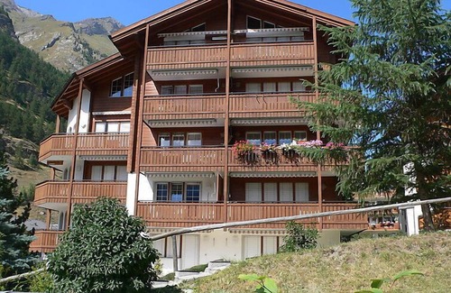 Large, comfortable apartment house "Les Violettes", 5 storeys. In the district of Spiss, 600 m from the centre, in a quiet position, south-west facing position. In the house: sauna (extra). Lift, storage room for skis, central heating system. Supermarket 450 m, restaurant 600 m, bakery, bicycle rental 600 m, 8 minute walk to the centre, bus stop "Spiss" 60 m, railway station "Bahnhof Zermatt" 600 m. Mountain railway 500 m, ski rental 500 m, ski bus stop 50 m, ski school 900 m, children's ski school. The keys‘ handover takes place by the agency Interhome in Zermatt.