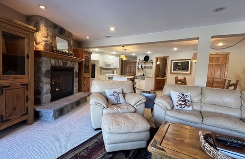 •Living room stays cozy with stone gas fireplace. Perfect for naps.