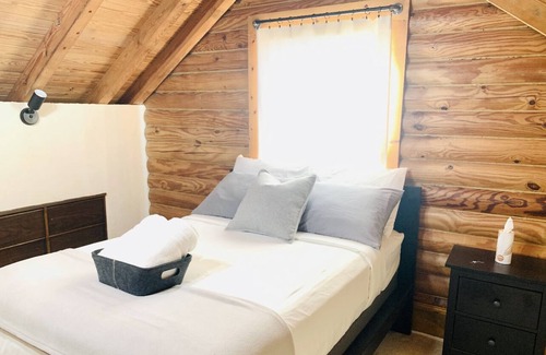 Unique full log cabin home that sits on 3 acres with incredible views overlooking the pond from a cliff. The home offers some fun outdoor activities such as a quick hike on the trail that takes you down below. There, you can take a stroll around or fish in the pond. Although we are in the country, the home is conveniently located 5 mins east of downtown Augusta. Our cabin is a great place for a couples retreat, anniversaries, date nights or time away to unplug and enjoy nature! The cabin is very spacious with a full kitchen, dining area and living room. The uniqueness of the log cabin provides a comfy cozy feel throughout the entire home. The loft has a desk for those traveling for work/business. There is also a washer & dryer available to guests. We do provide coffee/cream/sugar, granola bars and instant oatmeal. We offer fast and reliable wifi and there is plenty of parking space for those traveling with a trailer/camper/boat etc.
