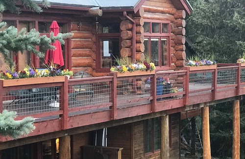 Log View Lodge Dog FriendlyUnobstructed Views From Every Room Private Hot Tub is located in Baldy Mountain. Log View Lodge Dog FriendlyUnobstructed Views From Every Room Private Hot Tub provides accommodation, featuring Internet, Balcony/Terrace, Fireplace/Heating, among other amenities. This House features Internet, Balcony/Terrace, Fireplace/Heating, to make your stay a comfortable one.