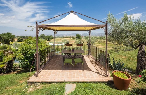 The location of the house is very panoramic and overlooks the swimming pool, the park, the gym and the panoramic area overlooking Assisi and Monte Subasio. The view descends to the Umbrian Valley and the Basilica of Santa Maria degli Angeli to go up to the left towards Bettona, Torgiano and Perugia; to the right towards Spello, Foligno and Montefalco. Behind us the wooded Monti Martani, Todi, Spoleto and Deruta and the famous walks of Perugia Vecchia.
