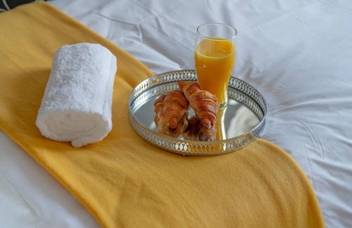 Brightly coloured 2 x single beds (can be transformed to a king size bed on request) , with a luxury hotel like towels, and space to relax after a long day at work/ business.