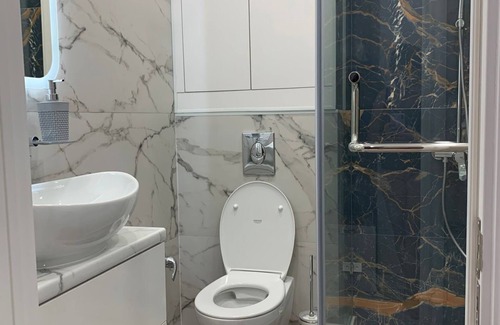 The apartment is warm in winter times and cool in summer. It has all amenities you need. The residential area has an amazing playground for children, and Shopping center Korkem in the same building, providing -10% off to the residents of the building.