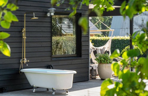 Welcome to this inviting vacation home. Arrive here looking forward to a tasteful and comfortable setting for your family vacation. The large living room is the heart of the house and will put a smile on the face of amateur cooks. The well-equipped and modern kitchen invites you to swing the wooden spoons. In addition to cozy evenings, by a fireplace, where you can fully enjoy the hygge feeling, you can spend the summer evenings on the spacious sun terrace. Laze in the hammock or lie on your sun lounger and listen to your podcast. A special feature is the outdoor freestanding bathtub, which promises you a great bathing experience.