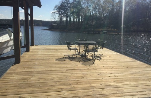 Gorgeous view in Clear Creek. Perfect spot for a fisherman's weekend or a very homey vacation getaway. Just 15 minutes away from Talledega race track. Home has 2 great rooms with fireplace in each. Large deck with gas grill. Nice brick patio on ground level. Lake view from almost every room. Two full baths and 2 half baths. Great yard with gentle walk down to dock. Lots of room to bring your boat. Home is fully equipped with everything you should need for a wonderful relaxing time.