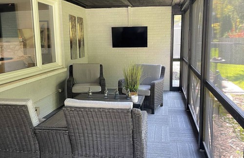 Lovely Mid Century Modern Ranch is located in Battle Creek. Lovely Mid Century Modern Ranch provides accommodation, featuring Security/Safety, Bedding/Linens, Wellness Facilities, among other amenities. This House features Security/Safety, Bedding/Linens, Wellness Facilities, to make your stay a comfortable one.