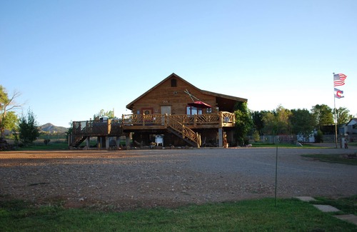 This Beautiful Spacious 3500 Sq. Ft Log Home Is UNIQUE. There is no interior stairwell which makes it perfect for Multi Families/Groups wanting their own separate space while vacationing together. The covered deck has wicker furniture that beckons you to sit back, relax and maybe serve up some dinner from the gas grill. Enjoy the spectacular panoramic views off the open deck and soak In the hot tub under the brilliant Colorado stars.Enjoy the hot tub under the Colorado skies. During the summer months, roast some hot dogs in our outdoor fire pit or try your hand at horseshoe. The children have plenty of room to run around and some outdoor toys are provided to keep them occupied. Each floor comes with a Completely Equipped Kitchen, Living/TV Rooms, Ping Pong table downstairs, toys are provided on each floor for the little ones. Plenty of DVDs, Wii Nintendo, Books, and Games for the family. Laundry Room upstairs and downstairs with Washer/Dryers. The top floor has a Wood Burning Fireplace. The Master Bedroom Is Beautifully Decorated Old West-Victorian Style and Includes a King Size Bed with Egyptian Cotton Sheets and En-Suite Bathroom That Includes Twin Sinks, a Jacuzzi Tub and Separate Twin Shower. The Guest Bedrooms are decorated in Western/Country styles. Each Includes a Queen Size Bed with Eqyptian Cotton Sheets. The downstairs bath also has a Jacuzzi Tub/Shower. Bedrooms downstairs are also Tastefully Furnished and Decorated with all the Amenities needed. The Cabin is 4 Miles East of Durango on the Florida Mesa. 10 Minutes From the Airport and 15 Minutes to Downtown Durango. Centrally Located To All Activities all year round.