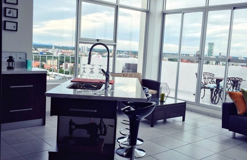 Top floor apartment with amazing views of the city 180 degree views from the private Balcony ... it is a wonderful location right on the center of the Town, a few blocks from everything, key location for downtown business, shops and restaurants around.