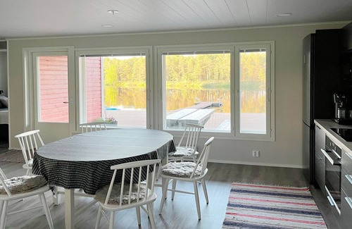 Pets allowed for an additional fee, please select the pet fee for your reservation according to the number of pets, thank you. The cabin is located right at the southern end of the lake Pitkäjärvi. Bright plot that slopes gently towards the beach. The plot has sparse coniferous forest (pines). Field layer grows mostly twigs, in summer/autumn blueberries and lingonberries. The beach is gently deepening, sand bottom on the left side of the pier. At the southern end of the lake, the bottom is softer. In winter the cottage has a mechanically thawed ice hole. The cottage also has a rowing boat and kayak (including buoyancy aids and life jackets) and a place for the barbecue.