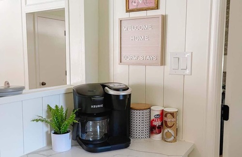 At this stylish 4BDR Cape Cod-inspired retreat just minutes from DFW, spend the day poolside, walk to Grapevine Lake, or head into town for wine tasting and boutique shopping. When you're not exploring the trails or the historic downtown, fire up the Jacuzzi, lounge beneath the trees, and channel your inner gourmand in our swoon-worthy kitchen. A perfect, luxurious spot near the lake—great for family gatherings, couples trips, and laid-back friend weekends alike.
