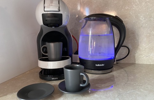 ✅ Sufficient coffee pods, salt, sugar, olive oil available