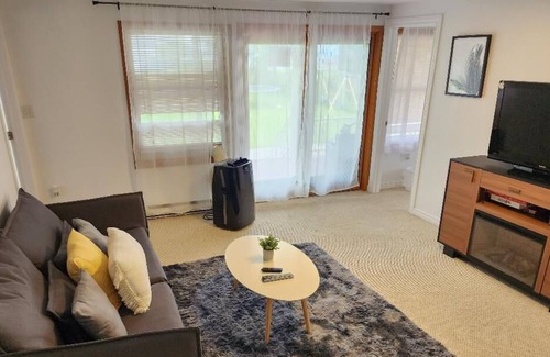 As you settle into the place, you'll find a living room, a fireplace, a safe, and air conditioning. Bathroom amenities include a hair dryer, towels, and toilet paper. The kitchen is equipped with a stovetop, as well as a coffee maker, an electric kettle, and a microwave. And you won't have to pack extra clothes, because you'll have a washer and dryer, too.