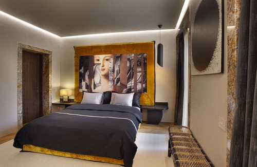 This spacious Suite features a 55-inch flat-screen TV, an integrated sound system, high-speed WI-FI, floor heating, climate control, and an in-room safe. The suite is full-equipped, from the cutlery and hand-blown LEHMANN wine glasses in the kitchen to the hairdryer in the bathroom. The Suite celebrates local Romanian artists and true craftsmanship.