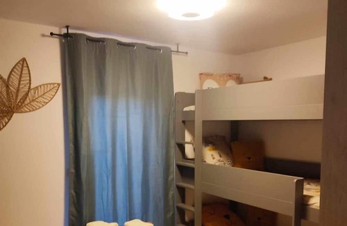 The two bedrooms, equipped with queen size beds and the third with a bunk bed for 3 children, offer comfortable accommodation for 7 people, (It is also possible for 2 people to sleep in a sofa bed) making it an ideal choice for families or groups of friends. In addition, the presence of a fireside chair and travel cots adds additional flexibility to meet the needs of guests.