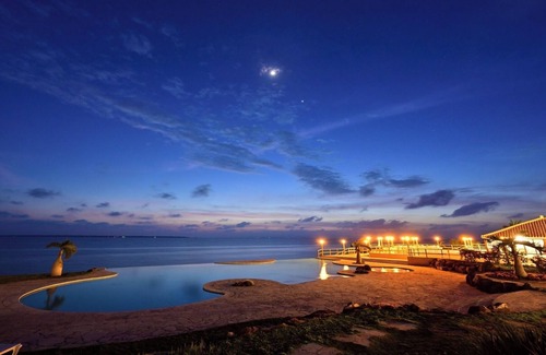 An infinity pool overlooking the Yaeyama Islands floating on the horizon