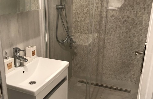 The air-conditioned apartment is composed of 2 separate bedrooms, a living room, a fully equipped kitchen, and 2 bathrooms. A flat-screen TV is featured.