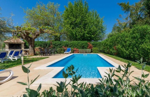 Old, child friendly country house "Marinko", 2 storeys, surrounded by trees. In the hamlet Kušći 6 km from the centre of Umag, outside the resort, in a quiet position, 1.5 km from the sea, 1.5 km from the beach, in the countryside. Private: property 800 m2 (fenced) with lawn, swimming pool angular (7 x 3 m, depth 140 cm, seasonal availability: 15.Apr. - 01.Oct.) with internal staircase. Terrace (30 m2), garden furniture, barbecue (swing). In the house: washing machine. Motor access to the house (250 m via unmade road). Parking at the house on the premises. Shop 1.5 km, restaurant 1.5 km, bus stop 2.2 km, pebble beach 1.5 km, rocky beach 1.5 km.