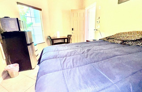 We have gone to some lengths to offer a comfortable and cozy place to stay. Furnishings include queen bed, wardrobe, table / chairs, night stand, dresser, microwave, and fridge. Ethernet, WIFI and Netflix/Amazon(no cable tv) are offered for use. Complimentary items have been made available for, you know, hospitality - right?