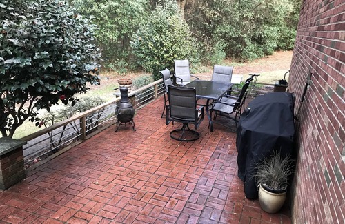 Beautiful private setting, private patio, to relax on at the end of a busy day. Conveniently located blocks from Hitchcock woods to go hiking or riding your horse, 5 minutes from charming downtown Aiken with its shops and restaurants, and 30 minutes from the Masters.