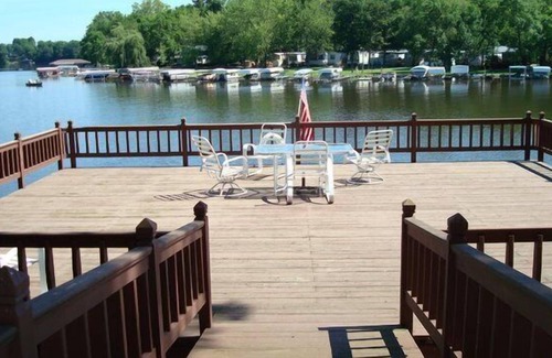 The owners live across the drive in the waterfront home. This has a HUGE deck over the water, 1 boat lift underneath,1 canoe and 4 sit in kayaks for your use. The owners welcome our guests that rent the condo to use these added features on their property! So, anytime you want to spend some time on the deck over the water or bring your own boat or rent one from Lake Shafer Boat Rentals, you have a large deck and slip to use! Bring your own life jackets. This is all located right across the drive from your vacation rental.