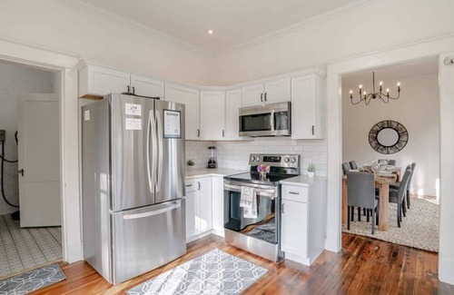 Full of character with coffered ceilings, stunning hardwood floors, and abundant natural light, this modernized charmer comfortably accommodates twelve guests in its 3-bedroom, 2-bathroom layout. Perfect for a convenient and reliable stay, we're just two miles from downtown and the Mobile Cruise Terminal. Our photos feature both professional shots and real-time images from our cleaning team, so you know exactly what to expect. Pets are welcome with a fee. We would love to host you!