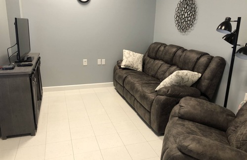 One Bedroom one Bath with Queen size bed. large couch with recliner. Full Kitchen and Washer and Dryer. Walking Distance to local Restaurants and Walmart. Only minutes away from Pickwick Lake, Coleman Park, Eastport Marina, and Aqua Yacht Harbor boat Landings. Plenty of parking and easy access for your Boat and Trailer with 110v available for charging batteries if needed.