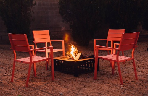 While in the backyard, you can lounge in the hammocks, sit by the fire, enjoy a nice dinner under the beautiful stars of Joshua Tree or relax for the evening in our hot tub. A brand new charcoal BBQ is in the backyard and it comes with some BBQ accessories, but please bring your own charcoal.
