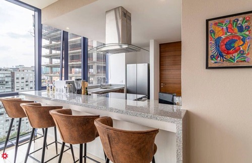 With a stunning city views, this stylish, designer apartment is located in the heart of Nuevo Polanco, only 15 minutes away from Antara Shopping Mall, Museo Soumaya and Museo Jumex. Common areas include: a pool, cafeteria and several spaces to relax and take a break from a city that never stops moving. The building is part of a larger complex that includes restaurants and cafes as well as a supermarket.