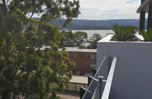 Modern 2-bedroom 2-bathroom apartment. Water views from balcony and bedrooms. Luxury French timber floor and underfloor heating in both bathrooms. Miele kitchen. Cooker oven, microwave, dishwasher. Fastest unlimited NBN internet. Mins walk to Gosord sailing club and waterfront. Close to bus stop, park, and pool. Underground secure parking is available.