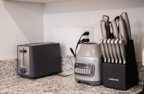 Our kitchen is fully stocked with everything you would need to cook, as well as a coffee and tea station.