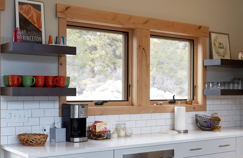 The southern facing front deck, with comfortable patio furniture, is perfect for morning coffee, or you can sit in the backyard shade to enjoy the cool mountain air. A picnic table and a gas grill, along with an outdoor fire pit make the back yard area a perfect spot for evening meals. Please note that we adhere very strictly to the posted fire bans in the area. If fires are not permitted, you will be notified prior to check in. We provide a propane fire pit to our guests when there is a ban in effect. You will forfeit your deposit if you choose to ignore the fire bans. Ignoring the fire ban puts not only yourself at risk, but also the lives of our entire canyon community.