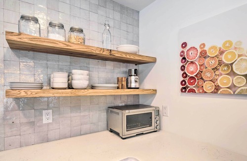 KITCHEN: Cooking basics, stainless steel appliances, spices, dishware & flatware, drip coffee maker, toaster oven, toaster, dishwasher